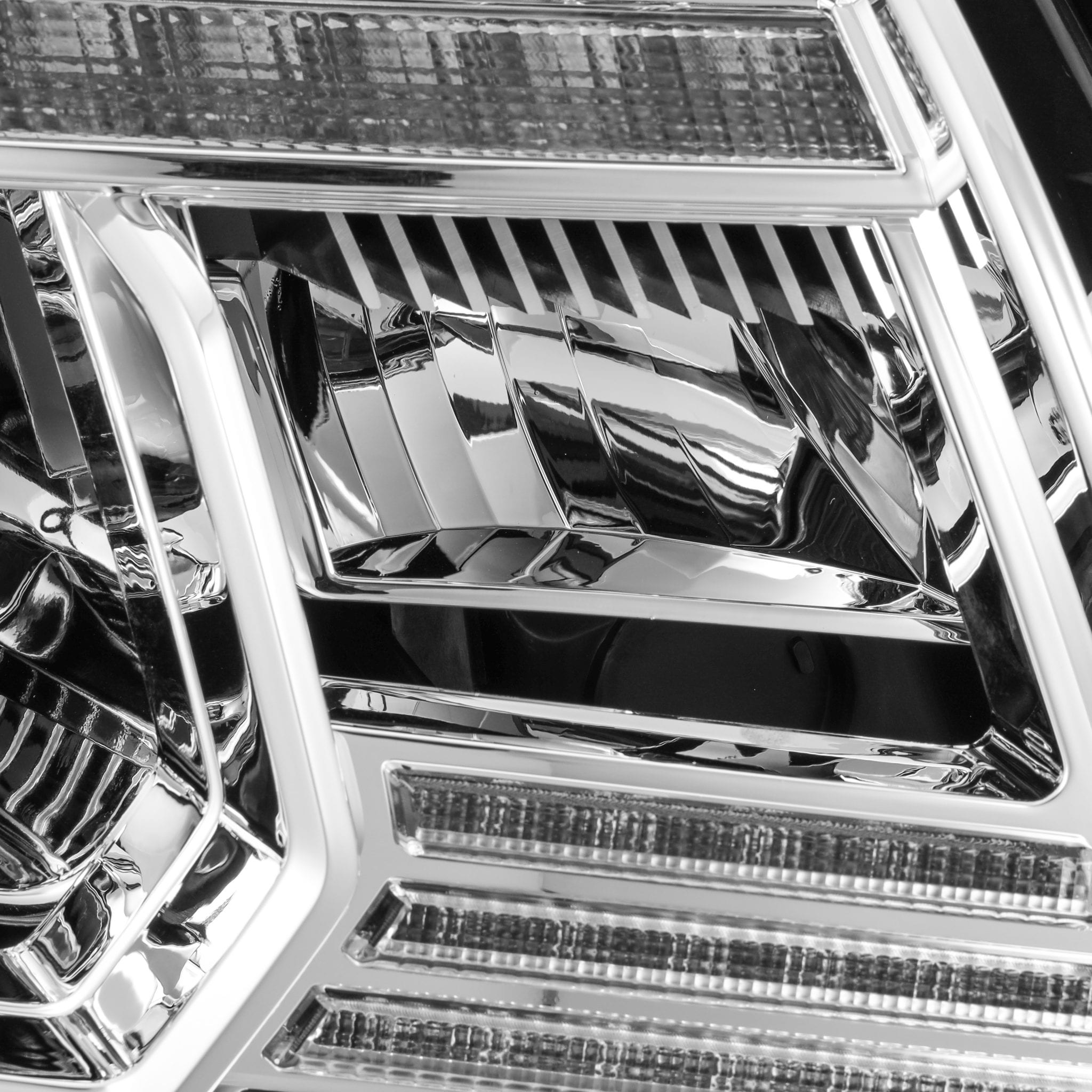 We compose these Toyota Tacoma LUXX-series projector headlights with our patented rectangular projector lens. The projection cut-off line is perfect for American LHD regulation.