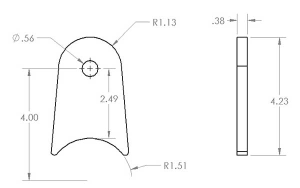 This is our go-to link tab for custom suspension setups. Designed to fit a 3.0" axle tube, it can easily be adjusted to suit slightly larger or smaller diameters. Like all of our single link tabs, it's laser-cut from beefy .375" (3/8") thick steel, giving you unmatched strength and confidence on tough terrain. We went with this thickness to match the strength of our .25" paired link brackets, so whether you're building a 3-link, 4-link, or bridging two tabs into a custom bracket, you're not compromising on durability. This long version measures 2.625" from the axle to the bolt centerline, offering a slightly taller mounting profile that works well in many geometry setups.