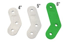 This 6" Boomerang Shackle is our largest size, offering increased articulation and clearance for serious suspension setups. Made from 3/8" A36 pickled & oiled steel, it’s laser cut with precision 1/2" bolt holes spaced 6" center-to-center. A third hole is cut at the apex, giving you a quick and easy way to weld two shackles together for added strength or custom length applications.