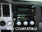 Replacement dial style climate control knobs for the 2007-2013 Tundra LIMITED. Injection molded of high strength and impact resistant ABS plastic. Assembly requires removal of dash panels and careful removal of knobs. This is not difficult, but care must be taken to keep knobs properly indexed. Please watch the instruction video before installing. Assembly requires a flat and phillips screwdriver (not included). Made in USA.