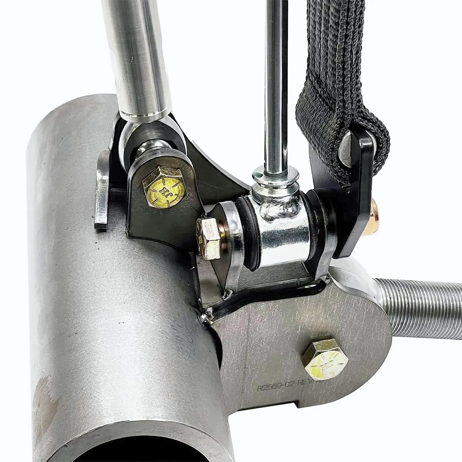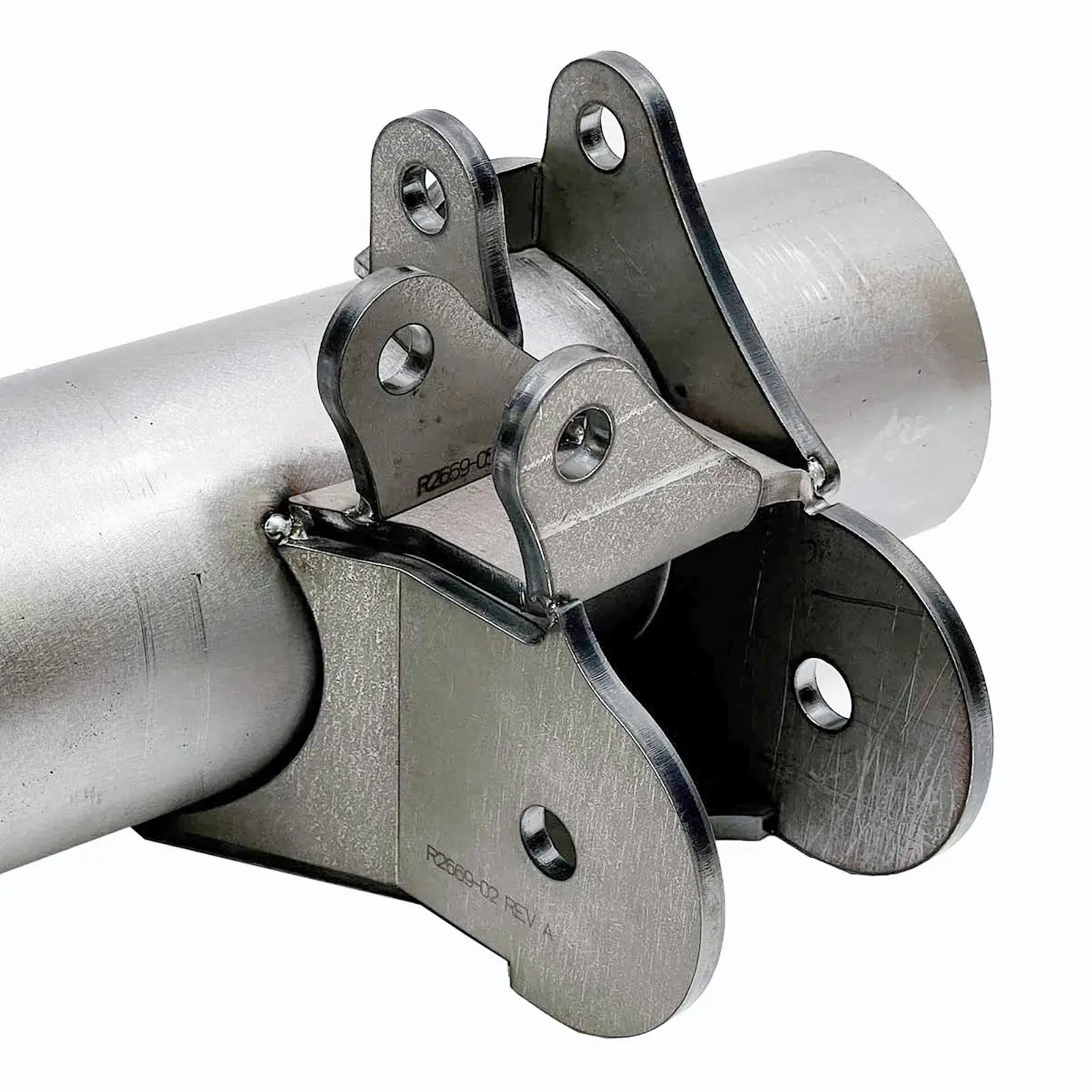 - Link, shock, limit strap, and sway bar mounting in one bracket