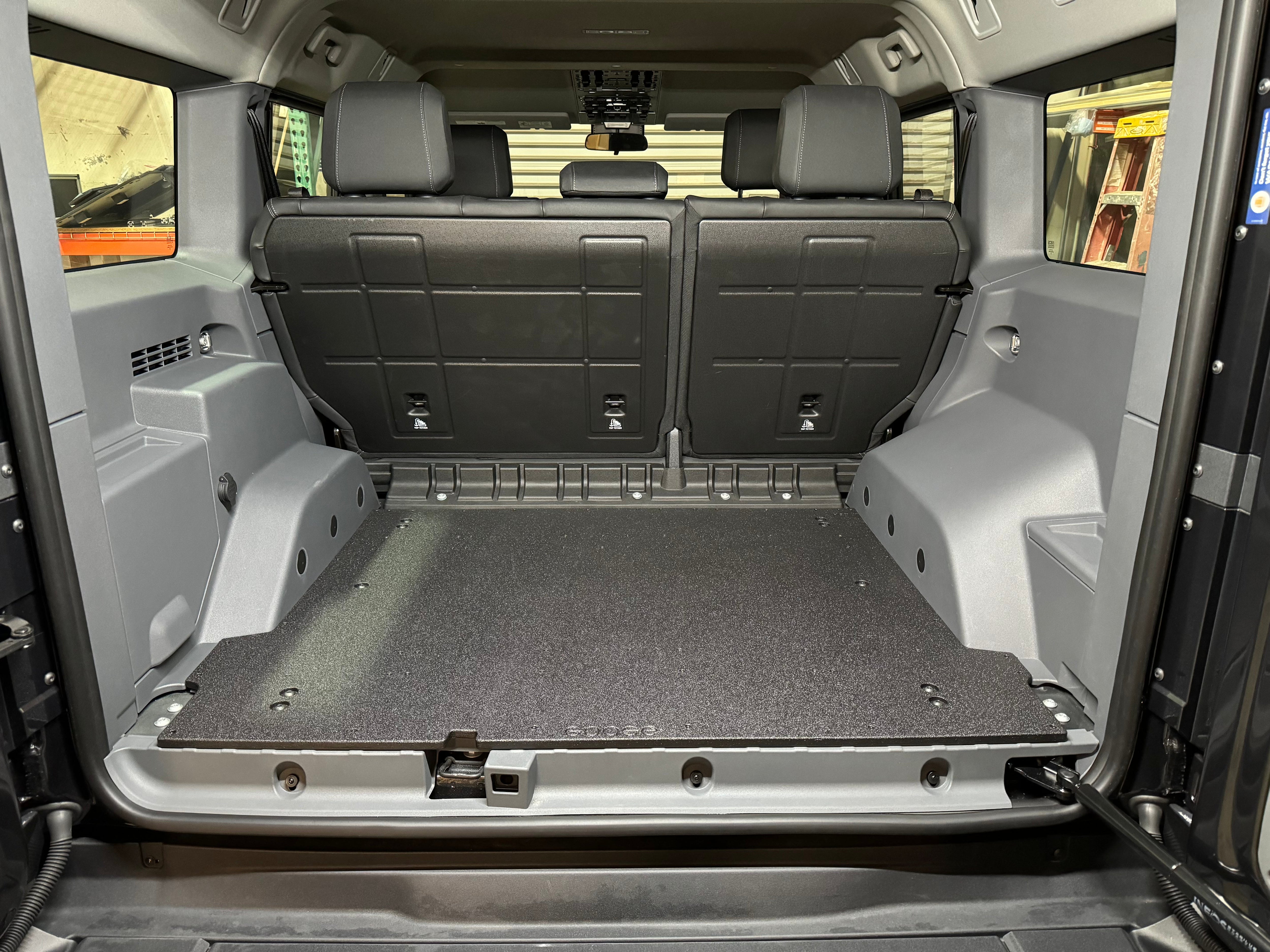 This system requires the removal of the rear factory floor liner and anchor points. Does not require cutting or drilling of any part of the vehicle. Once the plate is installed you now have a clean and flat surface.
