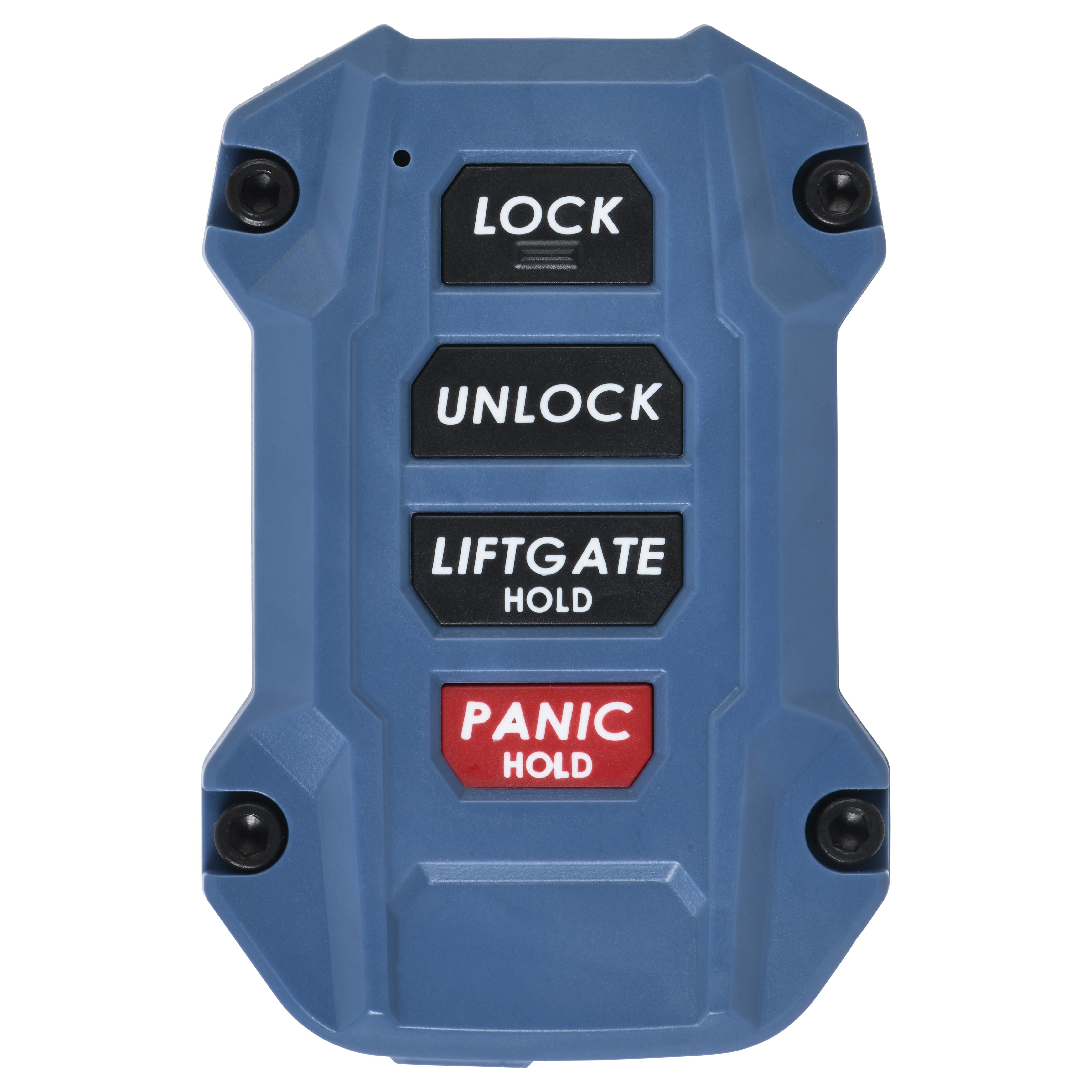 Button sets include both a "Liftgate" and blank button to accommodate both 3 and 4 button versions. Both black and red button sets include a red and black panic button.