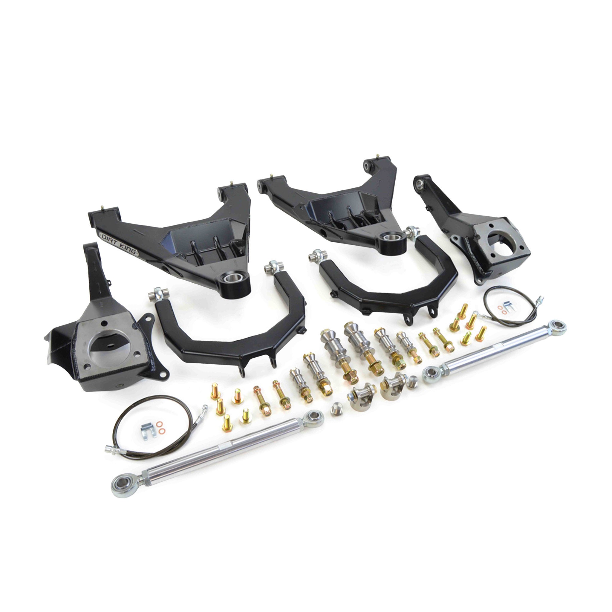 - Boxed plate lower control arms with pocketed shock mounts